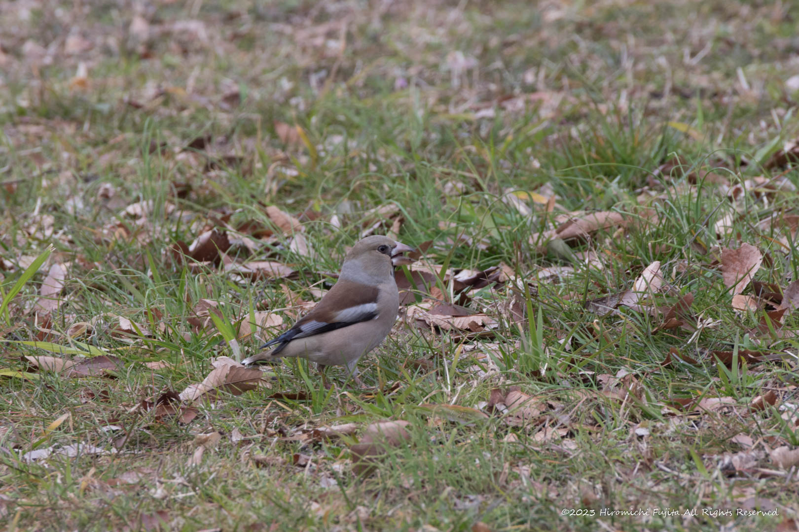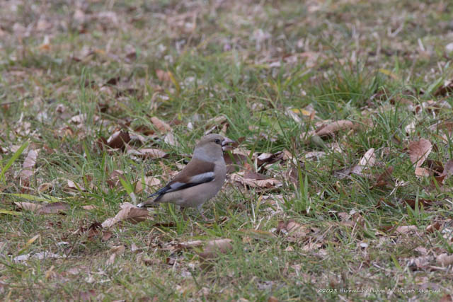 嘴が太く、全体的に丸みのある体系で、肉食を思わせるような鋭さがありますが、ムクノキ、エノキ、カエデなどの種子を主食としています。 冬のみみることができる渡り鳥です。